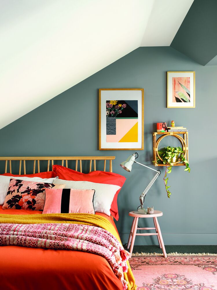 Keep the ceiling and trim light and bright to prevent your space from feeling small. These colors have been shown to reduce stress and anxiety. Blues are gentle, calming, immersive, and like pantone says, anticipatory. They can also make a space seem more expansive, so they're a great choice if your bedroom is on the small side. It can bring you comfort and hope.